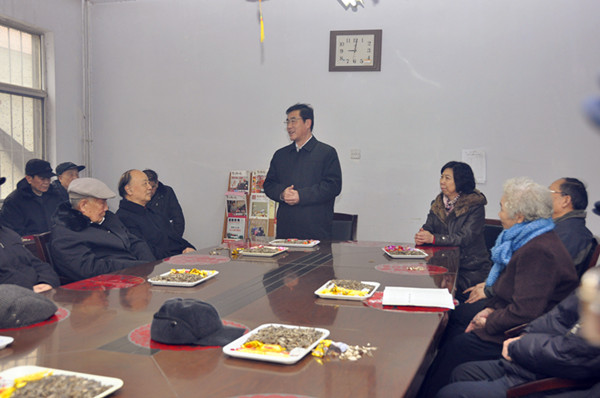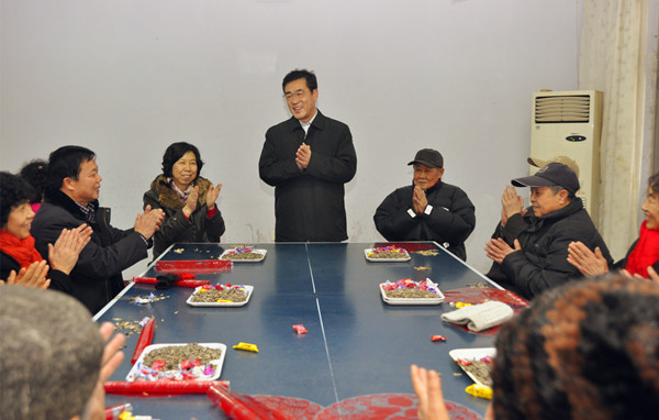 1月31日上午,奎文校区老干部活动中心内欢声笑语,喜气洋洋,2014年离退休老同志春节团拜会在这里举行。学校党委书记石增立、党委副书记张潍华代表学校向老同志们拜年,致以新春祝福和诚挚问候。