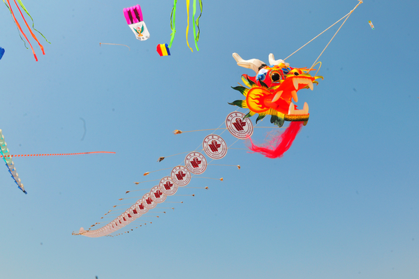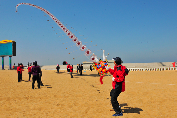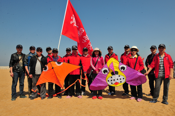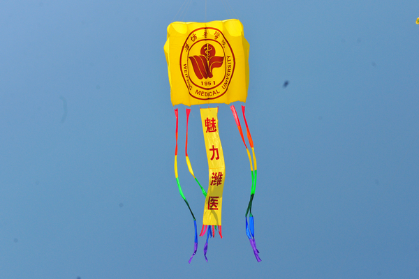 早在一个月前,由校工会牵头,刘吉恒、李修杰和王春刚等7位骨干队员组成的代表队就忙活起来。队员们多方考察、精心设计、反复绘图、细心扎制、数次试飞。他们扎制出了写着“潍医腾飞”的巨型创新风筝,校徽组成的彩色龙头蜈蚣风筝,还有燕子、熊猫等动物造型的传统风筝,参加了
