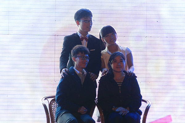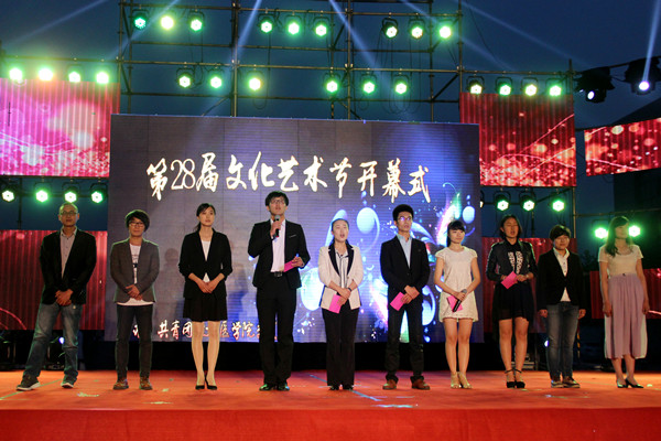 黄红、孙笑、吴维合、狄成林、刘源瀛、石浩泽、郑程程、王海强、唐雯、徐燕玲等10位当选为“潍医好青年”的同学致开幕辞,共同宣布我校第28届文化艺术节开幕。