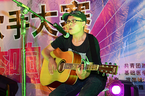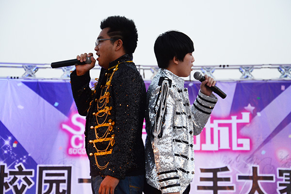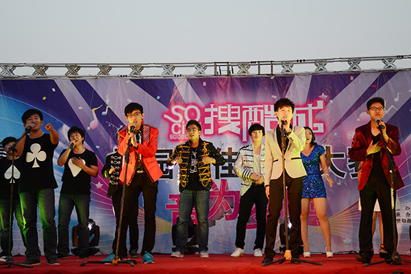 比赛现气氛热烈,同学们的喝彩声此起彼伏。第一环节后,根据现场评分选出五名选手进入第二环节。第二环节由选手进行独唱,所选歌曲更是彰显个人风采。一首充满回忆的《海阔天空》带着我们走向曾经的时代,经典歌曲《哦买噶》,劲爆的音乐,激情的节奏,把现场气氛推向了高潮。