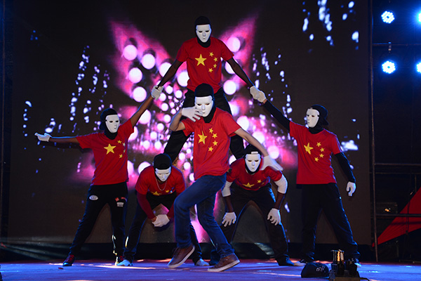 我校留学生来自南亚、非洲等20余个国家,他们以舞蹈、歌曲、乐器、服装表演和中华传统文化展示等形式参与了演出。文艺演出以热情洋溢的Bollywood Dance开场,欢快的舞步和动感的旋律迅速点燃了演出现场的气氛;印度籍兄妹组合用天籁之音演绎了歌曲《Let her go》;肯尼亚籍和加纳籍女生用中英文歌曲展示了她们对中国文化的喜爱;尼泊尔籍学生Ginindra载歌载舞,深情演唱了《我爱你中国》和欢快的尼泊尔歌曲《Oo Lala Fantasy》将现场引爆,广场变成了一片欢乐的海洋;随后,原汁原味的南亚舞蹈、嗨爆全场的国际学生Hip-pop舞蹈、青春绚丽的中国学生现代器乐演奏、绚丽的国际学生时装表演、特邀FM93.3主持人堪称经典的《上海滩》演唱等,结合现代的声光电舞台效果,带动现场气氛一浪高过一浪。观众手机频闪,微信圈、朋友圈、好友群,无一不在传递晚会的激情狂欢和中外文化的交流与融通。