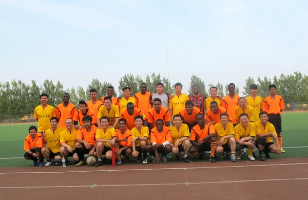 7月3日下午,随着终场哨音响起,我校留学生足球队和校工会教职工足球队的友谊赛结束,标志着我校“同一蓝天 携手并进ONE WORLD ONE MISSION”第二届中外文化交流节圆满落幕。