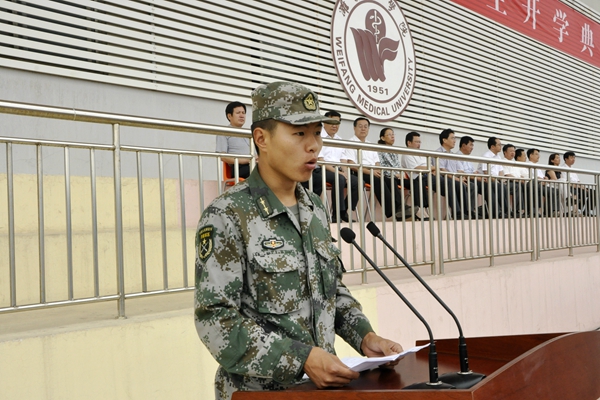 学校军训工作领导小组成员、各院(系)党总支负责人,辅导员、班主任和2014级全体参训学生参加军训动员大会。