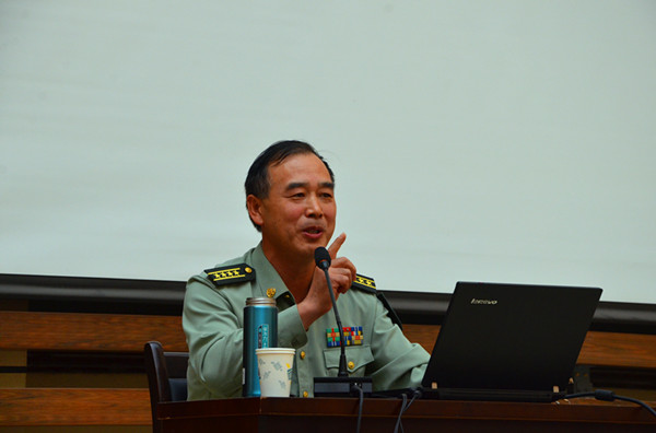 刘鹏从中国的近代历史出发讲解中国梦的追寻,百年屈辱,百年渴望,自强的中国人不断的奋起,强军梦与强国梦相融共生;“解梦”,指出了中国梦不等于“富裕梦”,也不是“霸权梦”,而是要在新的历史起点上实现富国与强军的统一;“圆梦”,是用强国梦、强军梦凝聚力量。他谈到国防的发展经历了从海洋到航空再到网络,列举了大量的史实讲述中国军事的发展历程和未来的前景。同时强调,今年正值甲午战争120周年,我们更应该具有忧患意识,作为大学生应该把个人梦、校园梦和中国梦联系起来。