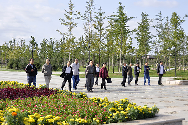座谈会前,老同志们一起参观了浮烟山新校区的主要景观。