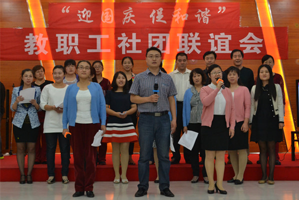 “今天是你的生日,我的中国……”,我校教职工合唱团一曲高歌拉开了教职工社团联谊活动的序幕。