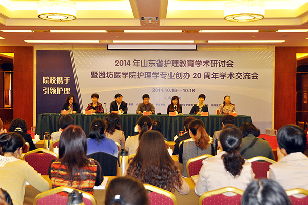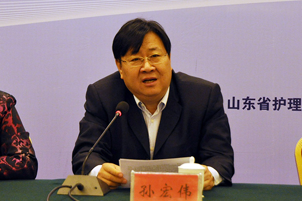 我校副校长孙宏伟致欢迎辞,山东省护理学会副理事长、护理教育专业委员会主任娄凤兰,山东省卫生学会办公室副主任、山东省护理学会常务副秘书长郭明兴,教育部护理专业教指委秘书长、北京大学护理学院副院长孙宏玉致辞,我校护理学院院长卢国华主持会议。