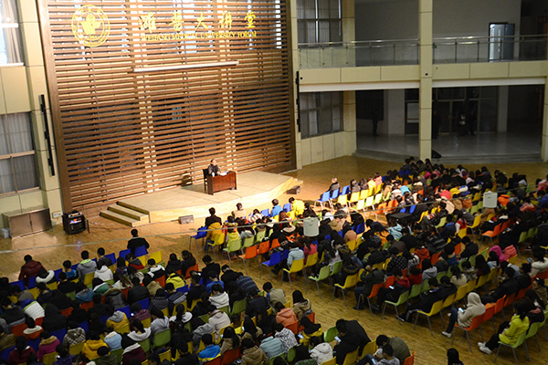 苗菁通过一系列耳熟能详的明清戏曲《牡丹亭》《桃花扇》《长生殿》《金瓶梅》等举例,将其与京杭大运河的修建、南北贯通之间的关联娓娓道来,繁而不乱,长而不冗。“只有走出去,才能更具活力。”一语道出明清戏曲长盛不衰的奥秘。为在座的师生,再现了明清时期京杭大运河沿岸的风土人情,在寒冬吹来一股平平仄仄、唱念做打的戏曲之风。