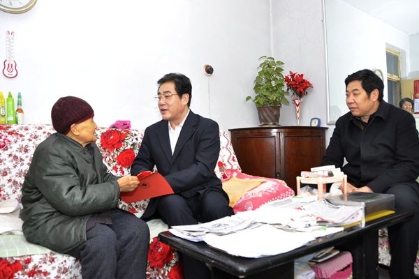 近日,根据山东省委组织部、老干部局《关于在2015年元旦春节期间开展走访慰问生活困难党员、老党员和老干部活动的通知》精神,结合我校实际,校领导,各部门、院(系)领导分别到离退休老同志家中走访慰问,将代表学校党委问候和祝福的慰问信送到离退休老同志手中,带去了学校的关怀与温暖,送上了新春的节日祝福。
