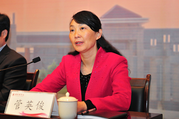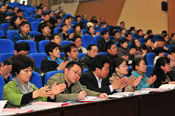 管英俊作了题为《强化队伍建设,提升培养质量,努力提高我校学位与研究生教育水平》的主题报告,她介绍了学校研究生教育取得的成绩、存在的问题,提出了下一步研究生教育发展的主要任务:优化研究生教育结构,加快培养模式改革,深入探索研究生分类培养机制;采取有效措施,提高生源质量;突出特色发展,着力强化学位点建设;加强导师队伍建设,提升指导水平。管英俊要求各位导师要为人师表、做教书育人的典范,一要努力做到德才兼备、率先垂范;二要增强责任,精心育人;三要注重学习,勇于创新,认真履行好导师责任,做“四有”好导师。