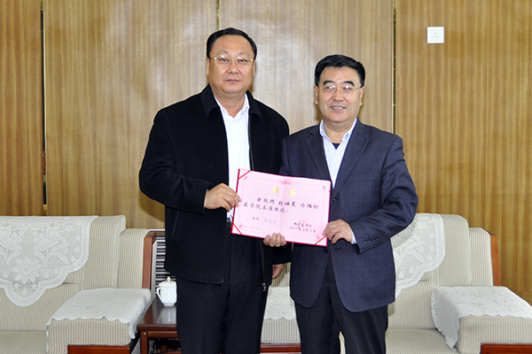 会前,学校聘任张岫美教授为我校客座教授,校长马安宁颁发聘书,副校长孙宏伟和学校办公室及国际交流学院负责同志参加聘任仪式。