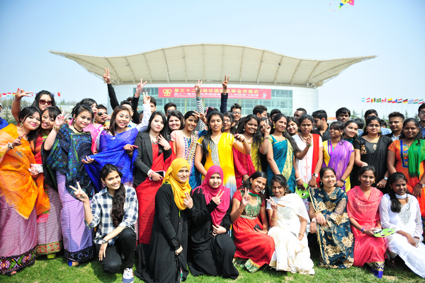 开幕式上,我校国际交流学院100余名留学生受邀参加了演出。留学生们身着民族服装,载歌载舞,热情洋溢,为开幕式带来异国风情,将现场气氛推向了高潮。