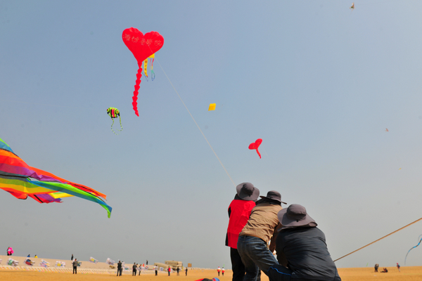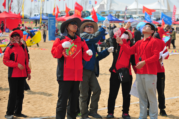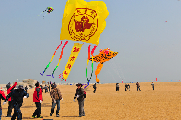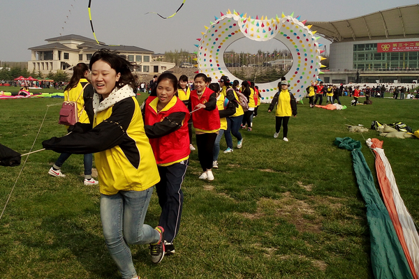 早在一个月前,由校工会组队,刘吉恒、李修杰和王春刚等9位骨干队员组成的代表队就开始忙活了起来。队员们多方考察、精心设计、数次试飞,制作出了“魅力潍医”、“爱心天使”风筝,校徽组成的彩色龙头蜈蚣风筝,还有金鱼、宠物狗等动物造型的传统风筝。学校代表队参加了4月11日、12日在北海人工沙滩举行的预赛,并参加此次浮烟山放飞场举行的决赛。15位参与风筝放飞比赛的老师们齐心协力,让10余只色彩艳丽、造型美观的风筝在空中展现了潍医元素。