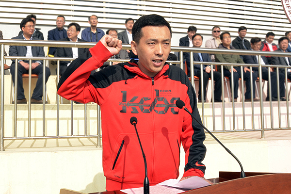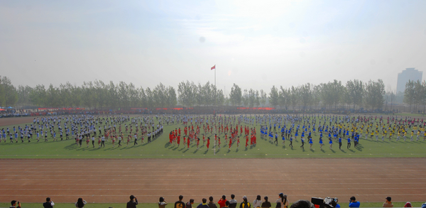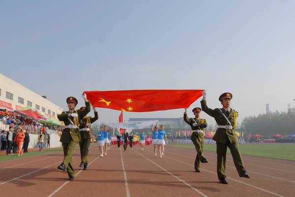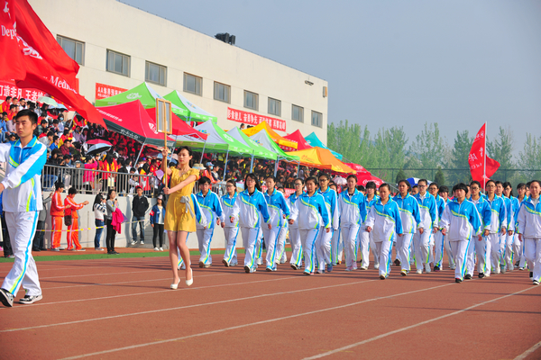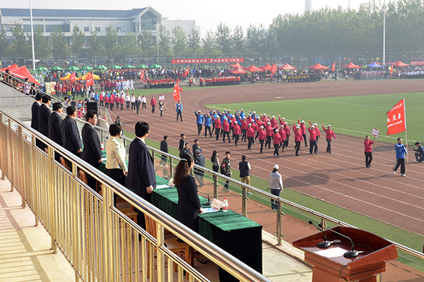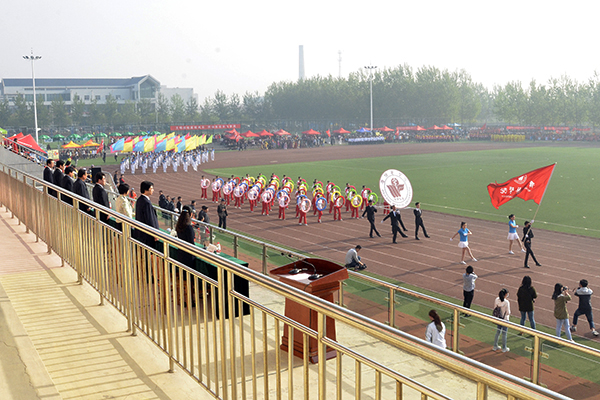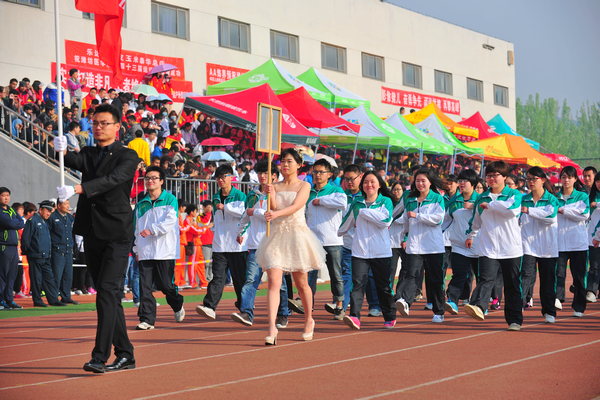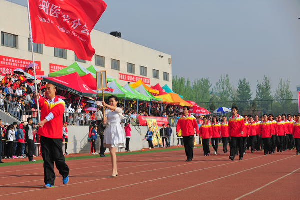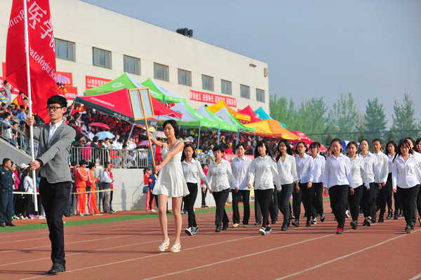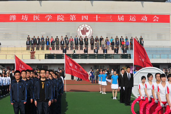 4月23日上午7:30,我校第四十三届运动会拉开帷幕。浮烟山校区体育场上,激情点燃,伴随着欢快的乐曲,仪仗队、运动员、裁判员入场。校领导石增立、马安宁、张潍华、孙宏伟、朱军、井西学、管英俊、葛国文,全体处级干部,教育教学质量督导评估专家委员会主任、副主任,教授代表,附院集团有关领导同志,全体运动员、裁判员和教职工、学生观众齐聚运动场。开幕式由副校长管英俊主持。