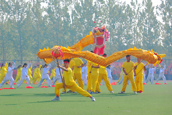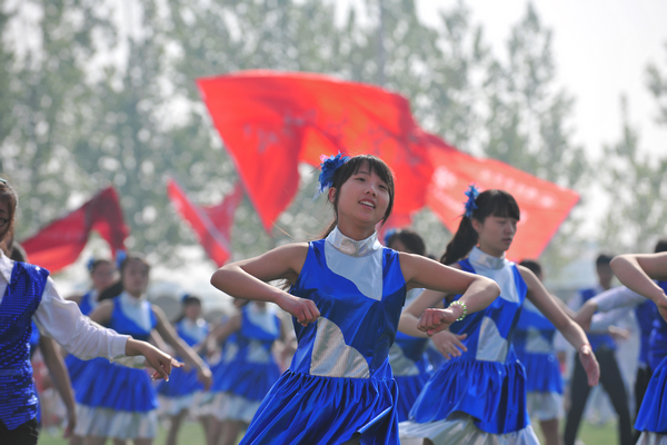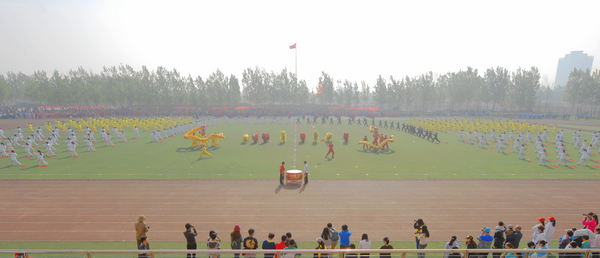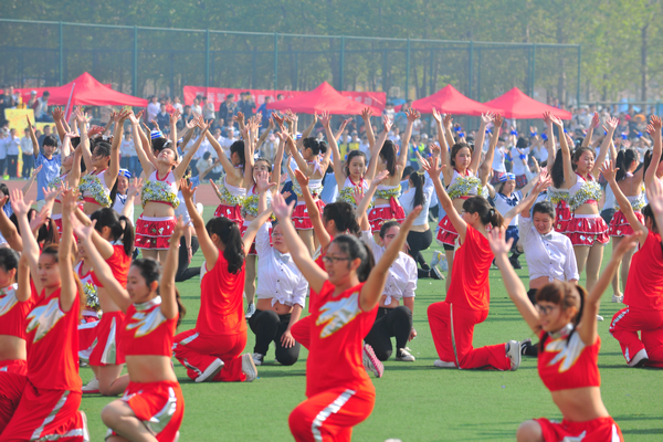校党委书记石增立宣布第四十三届运动会开幕。精彩纷呈的团体表演开始,大学生武术协会组织编排的“龙鸣狮吼、旗开得胜”表演静若伏虎,动若飞龙;近200位教职工组成的《今夜舞起来》广场舞表演方队带来了不同于课堂的热情和魅力;来自14个代表队1000多名同学表演的校园集体舞《青春飞扬》动感十足、活力四射;由3300多名同学共同完成的《我相信》健身舞蹈快闪,传递着欢娱和灵动。