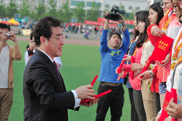 4月24日下午,我校第四十三届运动会圆满闭幕。副校长管英俊致闭幕词,副校长葛国文主持。