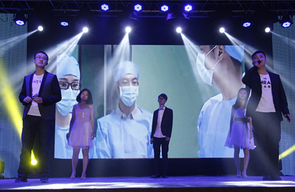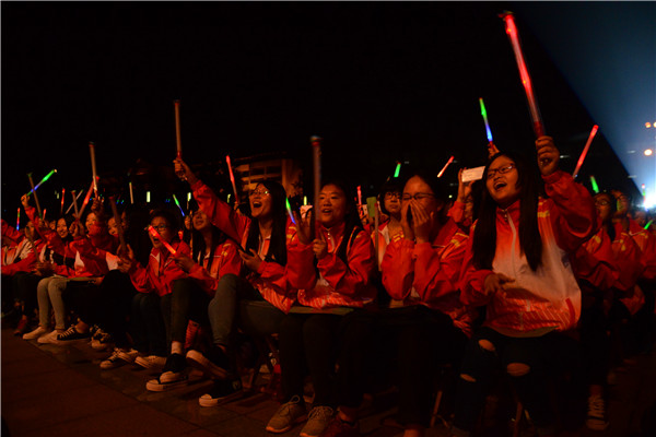 校党委书记石增立,党委副书记张潍华,副校长孙宏伟、朱军、葛国文与4000余名师生共同观看了晚会。
