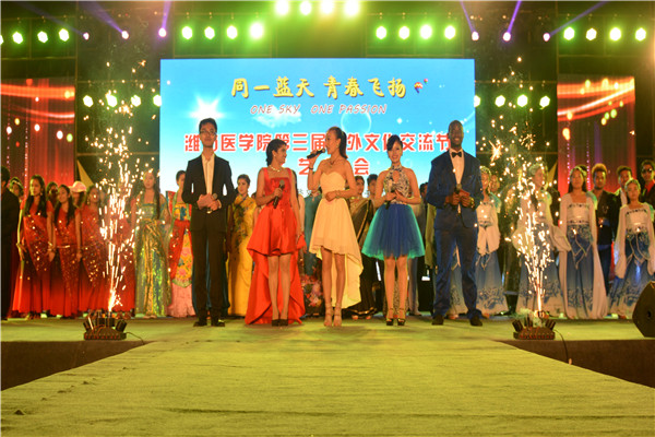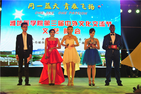 来自南亚、非洲等20余个国家的我校留学生,以舞蹈、歌曲、乐器、服装表演和中华传统文化展示等形式,与中国学生一起参与了演出。文艺演出以热情洋溢的《Bollywood Dance》开场,欢快的舞步和动感的旋律迅速点燃了演出现场的气氛;印度籍兄妹组合用天籁之音演绎了歌曲《I won’t give up》;加纳籍留学生Rosemond独唱欢快的歌曲《Chandelier》;中国学生表演的歌伴舞《三寸天堂》细腻深情,将古典浪漫柔情演绎的淋漓尽致;晚会现场,尼泊尔地震的受灾留学生用歌曲《感恩的心》表达了他们对中国人民和潍坊医学院老师、同学们的无私援助。舞台上这些手捧蜡烛、朴实无华的学生缺乏演出经验,甚至中文发音都不准,但真诚的谢意感染了观众。场下观众纷纷拿出手机,打开闪光灯,星星点点的手机灯光汇成了一片灯的海洋,台上台下心灵相约、温馨感人,共同传递着善良互助的正能量,传递着中尼千年友好的美丽愿望。两支留学生乐队:马马虎虎乐队和Pravin乐队的演出,将现场引爆;青春绚丽、阵容华丽的中外学生时装表演令观众目不暇接,各国、各民族传统服饰、商务装、沙滩装、情侣装、晚礼装等相继登场,中国学生身着汉、唐、明、清、民国服饰,雍容典雅、仪态大方,展现了博大精深的中华传统文化。随后,原汁原味的南亚舞蹈、嗨爆全场的国际学生Hip-pop舞蹈、特邀FM93.3主持人们的演唱等,结合现代声、光、电舞台效果,带动现场气氛一浪高过一浪。观众手机频闪,微信圈、朋友圈、好友群,无一不在传递晚会的激情狂欢和中外多元文化的交流与融通。
