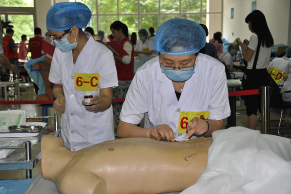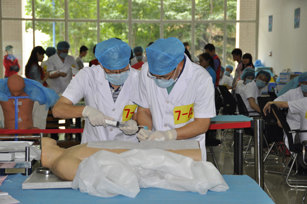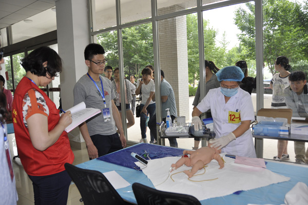 本次实习学生临床技能竞赛将历时两天,全面检查学生的临床技能水平和综合素质,本次竞赛采用多站式考核形式。内容涉及诊断学、内科学、外科学、妇产科学、儿科学等多门课程的基础理论、基本知识、基本技能考核。