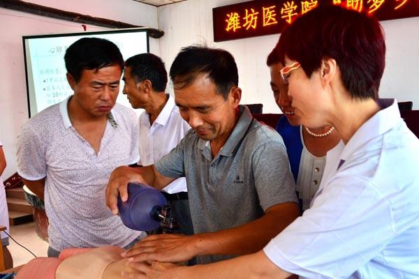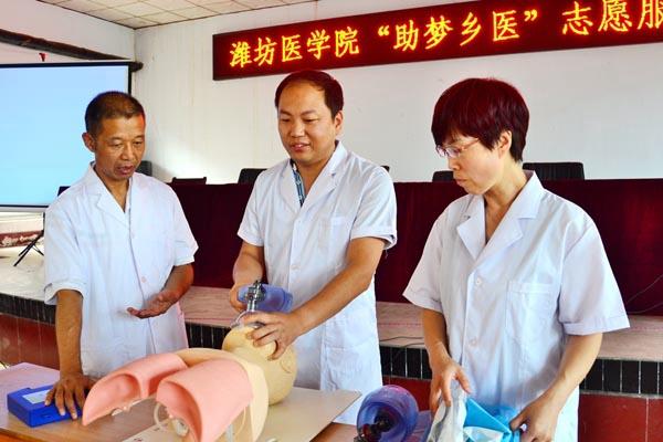 活动内容丰富,校团委书记高洪海、麻醉学系副主任张蕊在我校“第一书记”的带领下,到三个帮包村举行了社会实践基地挂牌仪式,并为村里的农家书屋捐赠了精心挑选的中外名著和儿童图书。附属医院专家积极开展“助梦乡医”志愿服务活动通过课件讲解、模拟人实训和分组指导的方式,对该镇的46名乡村医生进行了医疗知识培训,许多周边乡镇的乡村医生也闻讯赶来学习。麻醉学系师生组成的医疗服务小分队深入田间地头和农户家里,开展了慢性病防治、基本医疗卫生和健康保健知识普及活动。夜幕降临,同学们为三个帮包村的近千名群众进行了“走进新农村唱响主旋律”主题文艺演出,当地群众也纷纷献上精心准备的节目。平原县副书记张舒、县委组织部副部长潘吉兵等领导到场一起观看了演出。志愿服务期间,面向全校招募的8名基础扎实、学业优异的国学达人,将为帮包村的孩子们进行传统文化知识传授及课业辅导。