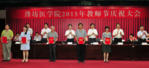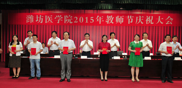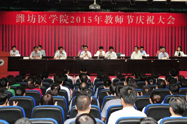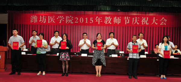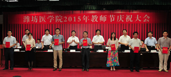 9月9日下午,我校2015年教师节庆祝大会在图书馆演播厅举行。校领导石增立、朱军、井西学、葛国文,附属、教学医院领导,获奖教师代表在主席台就坐。副校长朱军主持会议。