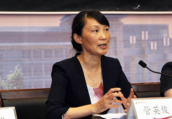 管英俊代表学校向2015级研究生新生表示热烈欢迎和祝贺。她介绍了学校的发展历程、研究生教育现状、学校师资队伍等方面的情况,并对研究生提出三点要求:身要正,德为先;勤于思,敏于行;讲诚信,守规矩。管英俊殷切期望研究生做人要实,做事要实,要尊重科学,实事求是,恪守学术规范,努力成为有社会责任感、敢于担当、关心社会、服务社会的优秀人才。