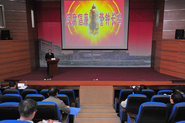 11月4日下午,由省委高校工委与省检察院共同组织开展的省属本科高校预防职务犯罪警示教育巡回宣讲报告会在我校办公楼一楼报告厅举行。省检察院职务犯罪预防处调研员秦喜迎、王德海带领宣讲团成员李强、亓庄园、杨建勋、张永萍进行宣讲。副校长葛国文主持报告会。