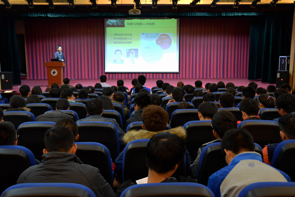 张永宁就创新的原因、创新人才的培养、创新思维的开发等问题作了详细介绍,并结合生动、具体的案例向师生们传递了创新思维的重要性,现场气氛热烈。