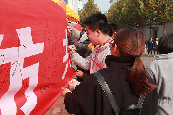 11月9日上午,由保卫处与团委主办、医学影像学系承办的“参与社区消防,共享平安家园”签名活动在浮烟山校区举行,标志着我校消防安全宣传月活动正式启动。