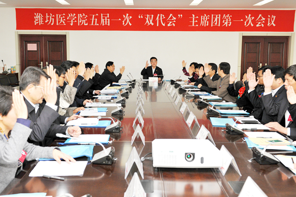 主席团主席、校党委书记石增立在会上讲话。他指出,学校五届一次“双代会”是在全党、全国上下认真学习贯彻党的十八届五中全会精神,科学谋划国民经济和社会发展“十三五”规划,认真研究、制定学校“十三五”发展规划的背景下召开的一次重要会议。会议的主要任务是,学习贯彻党的十八大、十八届三中四中五中全会精神和习近平总书记系列重要讲话精神,认真分析学校目前面临的形势、挑战和任务,科学谋划和设计今后一段时期学校发展的目标任务和工作措施。通过本次会议,将全校广大教职医护员工更加紧密地团结起来,凝心聚力,攻坚克难,使学校的人才培养、科学研究、社会服务以及文化传承创新提升到一个新的水平;通过这次会议,调整干部师生不适应、不适合甚至违背新的发展理念的认识,纠正不适应、不适合甚至违背新的发展理念的行为,摒弃不适应、不适合甚至违背新的发展理念的做法,在“创新、协调、绿色、开放、共享”发展理念的指导下,为学校“十三五”发展开好头。