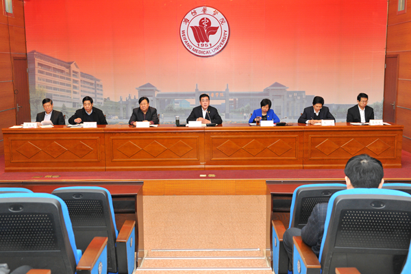 他谈了三方面的意见,一是要认真学习贯彻习近平总书记系列重要讲话精神和党的十八届五中全会精神,坚持“创新、协调、绿色、开放、共享”的理念,不断解放思想,更新观念,形成符合学校实际的科学的发展理念。二是要科学确立学校的发展目标,明确学校发展面临的形势和机遇,全面推进现代医科大学的创建。三是认真谋划好实现工作目标的技术路线,针对学校发展存在薄弱环节,坚持问题导向,突出重点,坚持两手抓。 一手抓好人才工作。要改善体制文化环境,努力做到人尽其才、才尽其用;要改善工作生活条件,搭建人才发挥作用平台;要坚持引进与培养并重,加大人才引进与在职培养的力度,提高人才数量和质量。一手抓好以基本建设、信息化建设、附院建设为主要内容的基础条件建设,以临床医学专业认证为导向的教学改革,以干部人事制度改革为主要任务的治理体系改革,以推进践行社会主义核心价值观为主要内容的大学文化建设等重点工作。