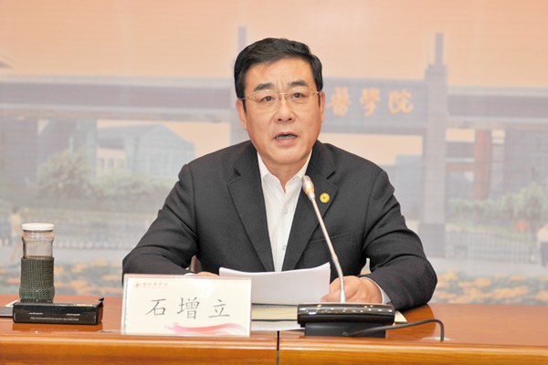 最后,石增立提出要求,2016年是学校“十三五”开局之年,改革发展任务艰巨,形势十分紧迫,要完成好各项工作,一要加强宣传,真正发挥导向作用,营造良好舆论氛围;二要加大干部人事制度改革力度;三要抓好党的建设,以基层党组织建设为抓手,坚持从严治党,严肃调整、纠正、摒弃不适应学校改革发展的观念和做法;四是提高工作标准,以新的思想观念,新的工作面貌,切实增强使命意识、责任意识和危机意识,以创建大学的高标准,聚焦工作任务精准发力,把具有标志性、引领性、支柱性的改革任务抓紧、抓牢、抓到底,谋实事,讲实话,出实招,求实效,确保圆满完成全年既定目标任务,卓有成效地推进学校各项事业科学发展。
