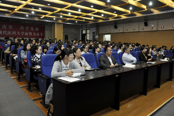 会后,安建雄教授在图书馆演播厅做了题为《转化医学:就在身边》的学术讲座,他从“医院40岁时的故事”逐渐引出“转化医学”的概念,列举了多个案例,展示了团队雄厚的科研成果,形象阐明了“转化医学”的本质,即“提出问题-找出问题所在-回答问题”。麻醉学系师生共200余人参加了此次讲座。