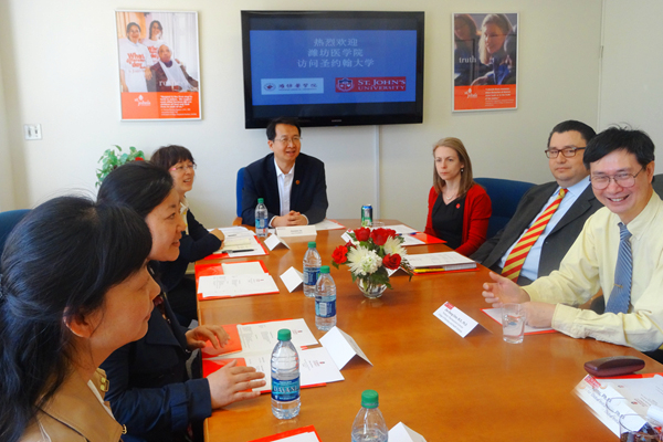 在圣约翰大学访问期间,与教务长Mangione博士、药学与健康科学学院院长Moller博士等就教师学术交流和学生研修等事宜达成合作意向,实地考察了合作院系实验室和学生公寓等,双方通过加强教师交流和合作开展暑期教育项目等方式实现教学和人才培养领域的深入合作。
