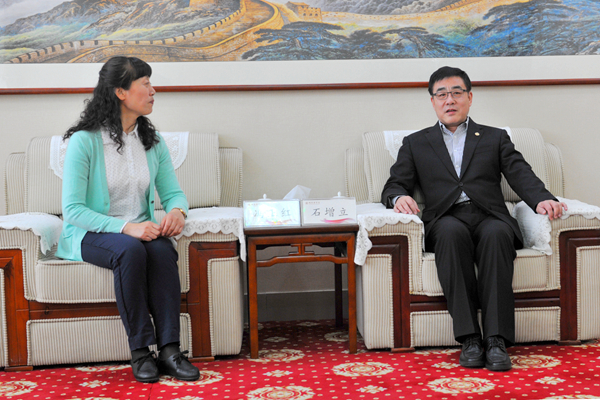 4月27日下午,滨州医学院临床医学院党委书记冯卫红一行3人来我校考察交流,校党委书记石增立会见了客人。