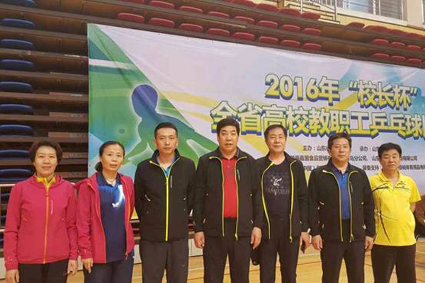 5月10日至13日,由副校长井西学带领李峰、鞠晓华、汤敏、邱良栋、吴国庆等老师组成的我校乒乓球代表队,参加了由山东省教育工会主办的2016年“校长杯”全省高校教职工乒乓球比赛,来自57所高校的58支代表队参加了比赛。