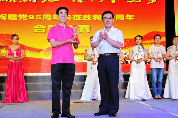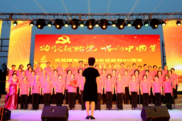 6月27日晚,学校中和广场上歌声飞扬,曲声激荡,“颂歌献给党 共唱中国梦”庆祝建党95周年暨长征胜利80周年教职工合唱比赛隆重举行。来自全校各党总支(党委)的18个合唱团,用潍医人发自心底的歌声,庆祝党的生日,纪念长征胜利。校领导石增立、管英俊、张潍华、孙宏伟、朱军、井西学、葛国文、傅大军均以普通党员身份参加所在基层党组织合唱团。