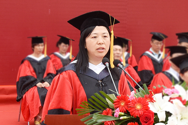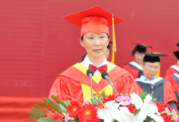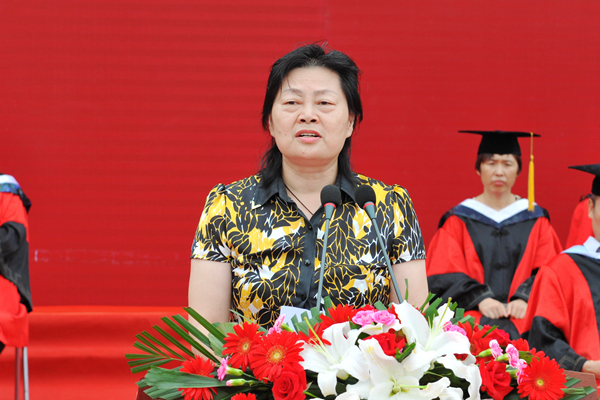 校党委副书记、校长管英俊代表学校讲话,她向获得硕士学位的611位同学表示热烈的祝贺,向悉心指导的导师、辛勤培育的父母、默默支持的亲友、热心服务的教职员工表达了衷心的感谢。管英俊在讲话中回顾了毕业生在校期间取得的喜人成果,并向即将挥别母校,意气风发开启人生新篇章的毕业生们表达了殷殷期盼。一是胸怀理想,甘于奉献,做品德高尚之人。希望同学们永葆家国情怀,爱国请从爱家开始,请从爱病人开始,请从爱身边的每一个人开始;希望同学们永葆赤子之心,记住“你怎样,中国就怎样;你光明,中国就不黑暗。”坚持正义,追求真理,磊落坦荡,在新的征程上实现人生新的跨越。二是善于学习,勇于创新,做终身学习之人。唯有学习,才能紧跟时代步伐。同学们既然选择了医学,就意味着选择了终身学习,意味着必须下一番苦工夫,要始终走在时代前列,就要依靠学习走向未来。三是脚踏实地,敢于担当,做乐道济世之人。“事不避难,勇于担当”。不论在什么岗位上,都要承担起应尽的责任和义务,敢于担当、乐于担当、勤于担当、善于担当、精于担当,脚踏实地,把本职工作做好。