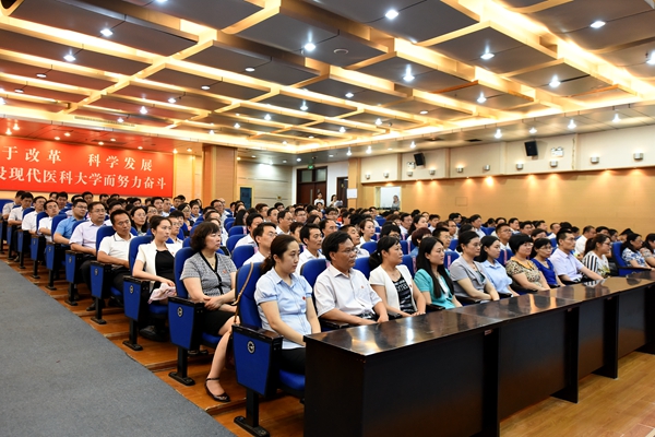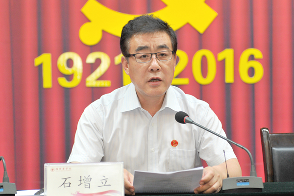 会上,石增立代表学校党委向受到表彰的优秀共产党员、优秀党务工作者和先进基层党组织表示祝贺。他肯定了近年来学校党建工作所取得的成绩,分析了在高等教育综合改革的新背景下,学校党建工作存在的薄弱环节。对进一步加强和改进我校党的建设,全面推进学校事业科学发展,石增立提出了四点要求:一是落实全面从严治党主体责任,切实把党建工作放在心上,抓在手上,扛在肩上;二是大力开展“两学一做”学习教育,党员干部要干在实处、走在前列、当好表率;三是把纪律规矩挺在前面,真正做到思想上讲忠诚、组织上讲服从、行动上讲纪律;四是坚持抓好党建促发展,加快推进名副其实的现代医科大学建设。最后,他号召全体党员切实增强责任感和使命感,履行管党职责,以攻坚克难的勇气,时不我待的精神,聚力发展,善做善成,努力把我校党组织建设得更加坚强、更富活力。