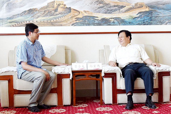 7月12日上午,长治医学院麻醉学系主任贾晋太一行六人来校进行交流。副校长孙宏伟在办公楼六楼接待室会见了来宾。