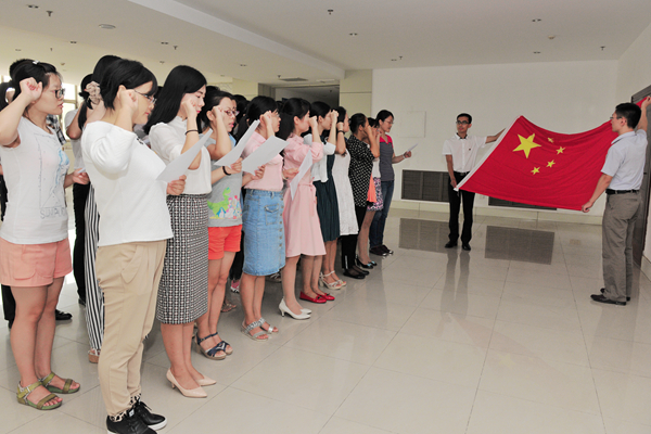 开班仪式结束后,学校对新职工进行了集中培训。9月13日上午,全体新进职工面对国旗,举行了庄严的教师宣誓仪式;教务处、科研处负责人分别作了《青年教师如何做好教学关》和《青年教师如何做好科研工作》的专题报告。下午,全体新进职工聆听了于金明院士《不忘初心 坚持梦想》的专题报告后,参观了校史馆,对校史校情有了进一步的了解。9月14日,全体新进职工进行了为期一天的户外素质拓展活动。