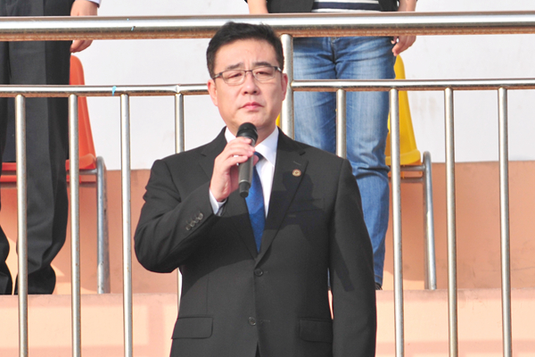 校党委书记石增立宣布军训成果汇报开始 |