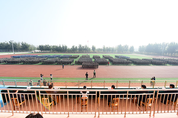 军训工作领导小组全体成员,2016级学生辅导员、班主任,全体教官和参训学生参加大会。