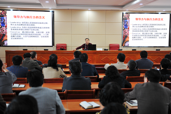 10月27日上午,复旦大学国际关系与公共事务学院刘建军教授应邀来校,在办公楼四楼会议室为全校处级干部作了“如何提高领导力与执行力”的专题报告。