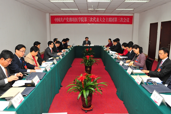 4月12日下午,中国共产党潍坊医学院第三次代表大会主席团在图书馆121会议室举行第三次会议。校党委副书记张潍华主持会议。