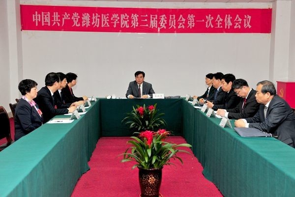 4月13日上午,中国共产党潍坊医学院第三届委员会在图书馆121会议室举行第一次全体会议。李欣章主持会议。