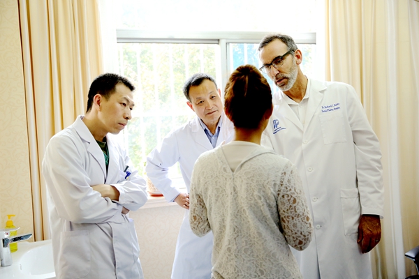 在整形外科医院交流期间,Parfitt博士分享了美国整形医学领域的临床手术案例,双方就建立友好医院、互派医生交流、联合开展整形外科手术和科研合作等方面达成合作意向。随后,Parfitt博士参观了医院门诊和手术室,并为两位病人进行了现场会诊。