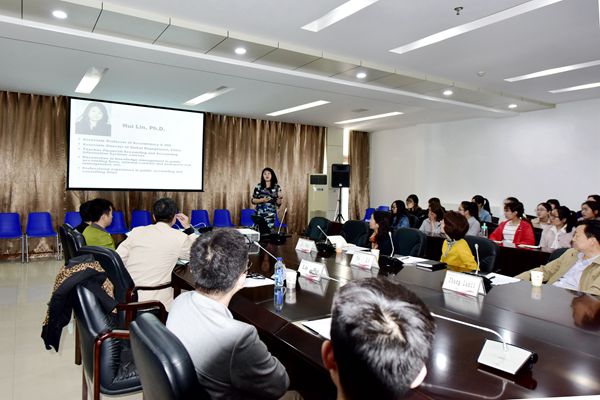 座谈会上,林卉副教授首先介绍了德保罗大学位于芝加哥的地理优势、学校办学理念、学院概况和课程设置等基本情况,并就学生提出的攻读硕士学位条件、语言要求、奖学金、暑期课程等问题给予了详细的解答。