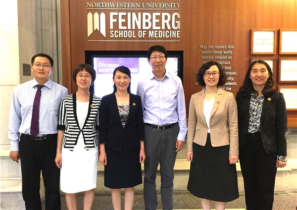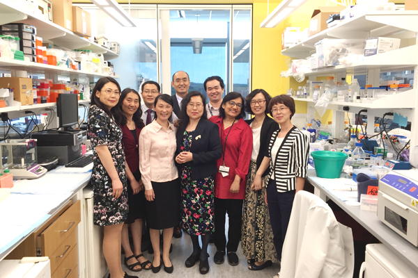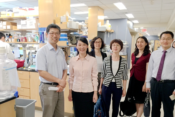 出访期间,管英俊一行还赴美国哈佛大学医学院王欣教授、麻省总医院张灿博士、范斯坦医学研究所王平教授和西北大学肿瘤中心房德玉教授等海外校友实验室进行了实地考察,就科研合作、平台建设、师资培养和海外高层次人才引进等事宜进行了深入交流。