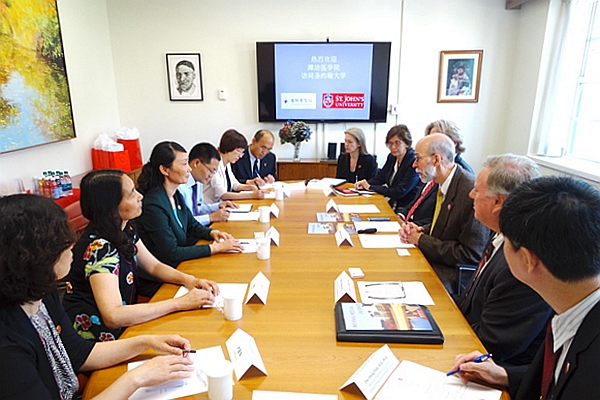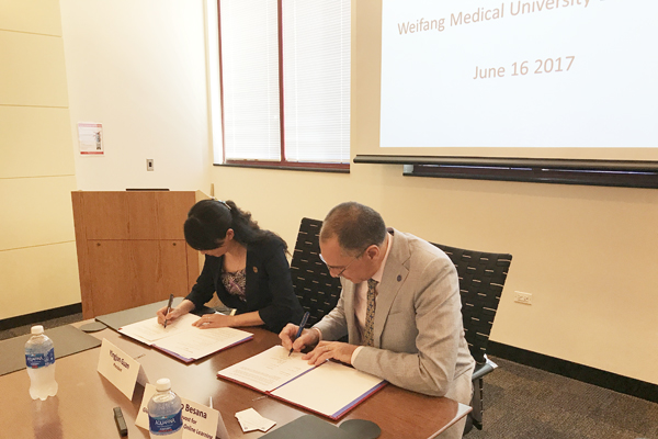 美国访问期间,代表团与圣约翰大学教务长Mangione博士、药学与健康科学学院院长Moller教授等洽谈了药学专业研究生联合培养项目,进一步商讨了今年暑期学分课程项目,并签署了合作备忘录。德保罗大学访问期间,代表团与教务长Gian博士、健康与科学院院长Philip教授等就护理学和心理学专业研究生联合培养、教师访学和网络课程共建等事宜签署合作意向。